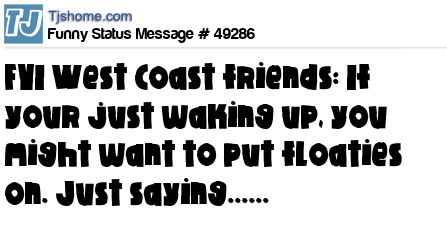 X says FYI West Coast friends: If your just waking up, you might want to put floaties on. Just saying......