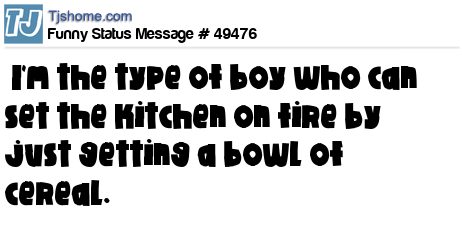 X is I'm the type of boy who can set the kitchen on fire by just getting a bowl of cereal.