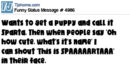 X wants to get a puppy and call it Sparta. Then when people say 'Oh how cute, what's it's name' I can shout 'This is SPAAAAARTAAA' in their face.