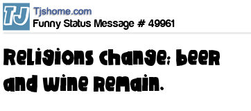 X says Religions change; beer and wine remain.