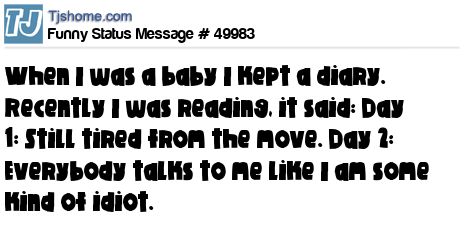 X When I was a baby I kept a diary. Recently I was reading, it said: Day 1: Still tired from the move. Day 2: Everybody talks to me like I am some kind of idiot.