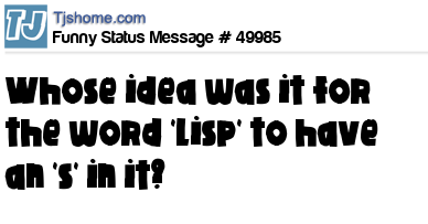 - # 87882 Whose cruel idea was it for the word lisp to have an "s" in it?