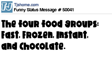 - # 31122 The four food groups: Fast, Frozen, Instant, and Chocolate.