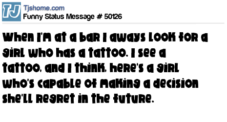 X is When I'm at a bar I aways look for a girl who has a tattoo. I see a tattoo, and I think, here's a girl who's capable of making a decision she'll regret in the future.