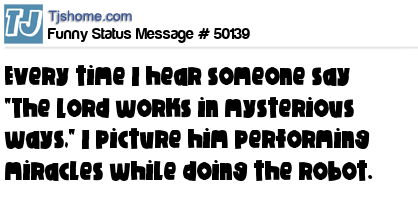 X Every time I hear someone say "The Lord works in mysterious ways," I picture him performing miracles while doing the robot.