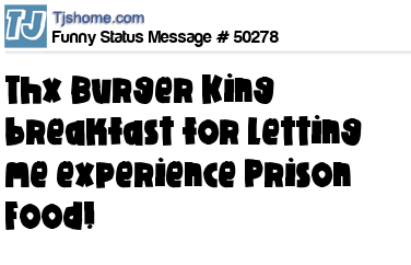X is Thx Burger King breakfast for letting me experience Prison Food!