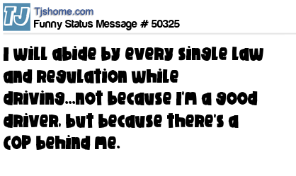 X says I will abide by every single law and regulation while driving...not because I'm a good driver, but because there's a COP behind me.