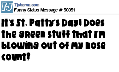 X It's St. Patty's Day! Does the green stuff that I'm blowing out of my nose count?