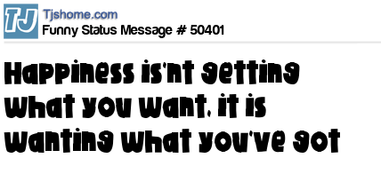 X Happiness is'nt getting what you want, it is wanting what you've got