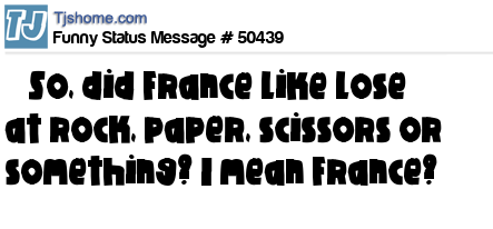 X says So, did France like lose at rock, paper, scissors or something? I mean France?