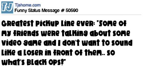 X is greatest pickup line ever: "Some of my friends were talking about some video game and I don't want to sound like a loser in front of them.. so what's Black Ops?"
