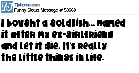X I bought a goldfish... named it after my ex-girlfriend and let it die. It's really the little things in life.