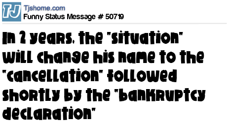X In 2 years, the "situation" will change his name to the "cancellation" followed shortly by the "bankruptcy declaration"