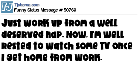 X Just work up from a well deserved nap. Now, I'm well rested to watch some TV once I get home from work.
