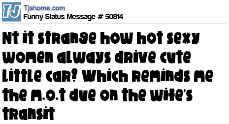 X says nt it strange how hot sexy women always drive cute little car? Which reminds me the m.o.t due on the wife's transit