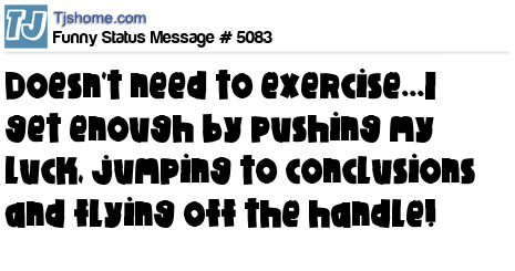 X is doesn't need to exercise...I get enough by pushing my luck, jumping to conclusions and flying off the handle!