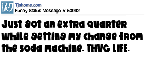 X Just got an extra quarter while getting my change from the soda machine. THUG LIFE.