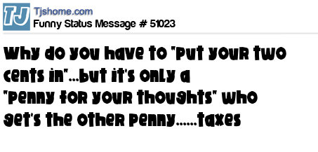 X is Why do you have to "put your two cents in"...but it's only a "penny for your thoughts" who get's the other penny......taxes