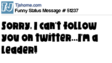X is Sorry, I can't follow you on twitter...I'm a leader!