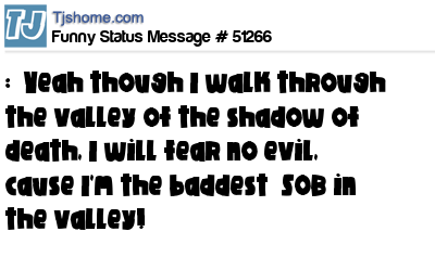 X says : Yeah though I walk through the valley of the shadow of death, I will fear no evil, cause I'm the baddest SOB in the valley!