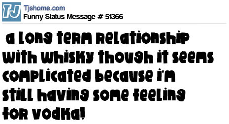 - # 91432 Just changed my FB to "in a relationship with vodka which gets complicated after downing shots of tequila