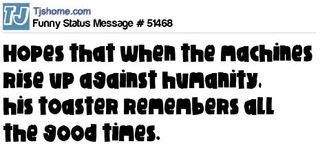 X hopes that when the machines rise up against humanity, his toaster remembers all the good times.