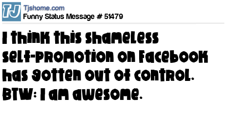X  I think this shameless self-promotion on Facebook has gotten out of control. BTW: I am awesome.