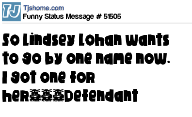 X says So Lindsey Lohan wants to go by one name now. I got one for her~~~Defendant