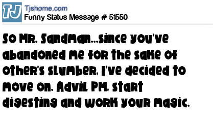 X says So Mr. Sandman...since you've abandoned me for the sake of other's slumber, I've decided to move on. Advil PM, start digesting and work your magic.