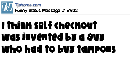 - # 77154 Self checkout was invented by a guy who had to buy tampons.