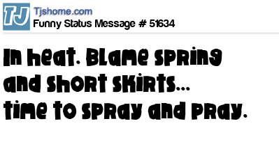 X is in heat. Blame spring and short skirts... time to spray and pray.