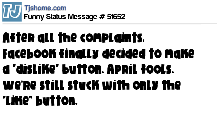 X After all the complaints, Facebook finally decided to make a "dislike" button. April fools. We're still stuck with only the "like" button.
