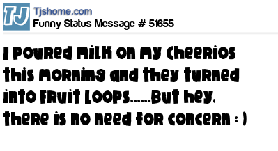 X I poured milk on my Cheerios this morning and they turned into Fruit Loops......But hey, there is no need for concern : )