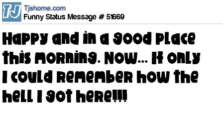 X is Happy and in a good place this morning. Now... If only I could remember how the hell I got here!!!