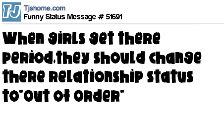 X is when girls get there period,they should change there relationship status to"Out of Order"