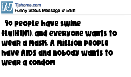 X 90 people have swine flu(H1N1), and everyone wants to wear a mask. A million people have AIDS and nobody wants to wear a condom