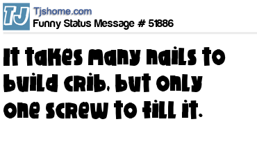 - # 92909 conficious says it takes many nails to build a crib but only 1 SCREW to fill it