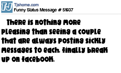 - # 31135 there is nothing more pleasing than seeing a couple that are always posting sickly messages to each, who finally break up on facebook