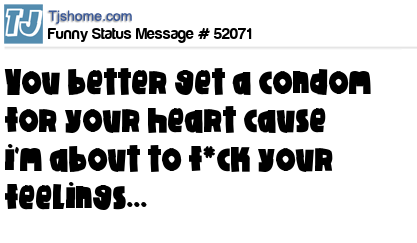 - # 104199 Put a condom on your heart & f$ck your feelings.