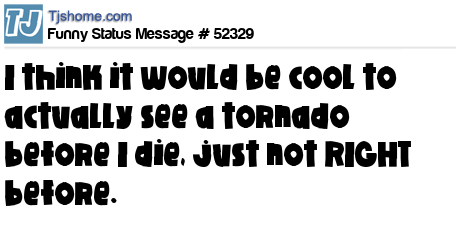 X I think it would be cool to actually see a tornado before I die, just not RIGHT before.