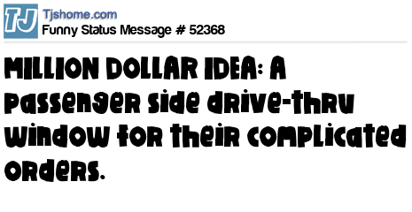 X MILLION DOLLAR IDEA: A passenger side drive-thru window for their complicated orders.