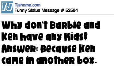 X Why don't Barbie and Ken have any kids? Answer: Because Ken came in another box.