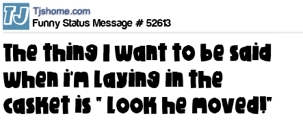 X says the thing I want to be said when i'm laying in the casket is " Look he moved!"
