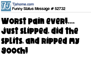 X is worst pain ever!.... just slipped, did the splits, and ripped my gooch!