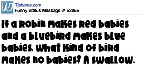 X is If a robin makes red babies and a bluebird makes blue babies, what kind of bird makes no babies? A swallow.