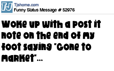 - # 8439 Woke up this morning, looked down and one of my toes was missing, There was a note stuck to my foot that said 'Gone To Market'