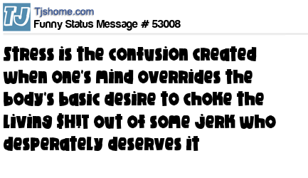 - # 15311 STRESS:- The bodies natural physiological response to restraining oneself from strangling the living s#$t of someone who really deserves it. ahhhh gotta love my job!!! lol