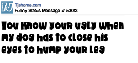 - # 50717 you know your ugly when the dog has to close his eyes to hump your leg