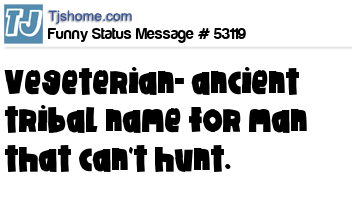X Vegeterian- ancient tribal name for man that can't hunt.