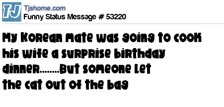 X says My Korean mate was going to cook his wife a surprise birthday dinner........But someone let the cat out of the bag